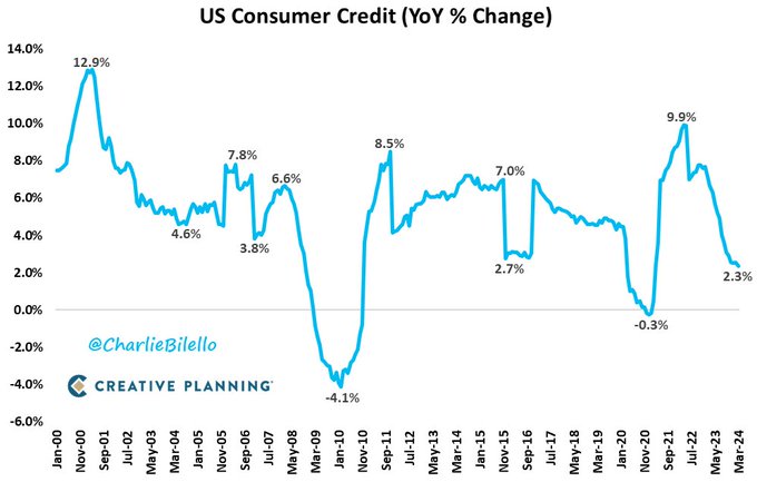 Total US Consumer Credit increased 2.3% over the past year,