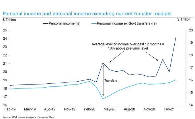 Personal income with and without government transfers |