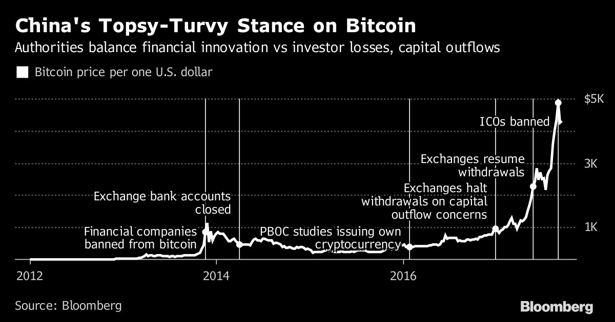 This is the history of Bitcoin in China. Shown on one giant Bloomberg chart