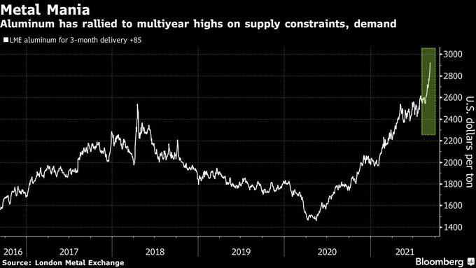 Supply-chain snags that have helped push aluminum prices to a 13-year high are unlikely to ease any time soon