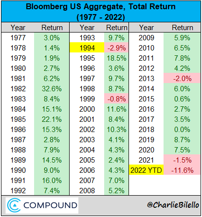 The US bond market is on pace for its worst year in history with a loss of 11.6%.