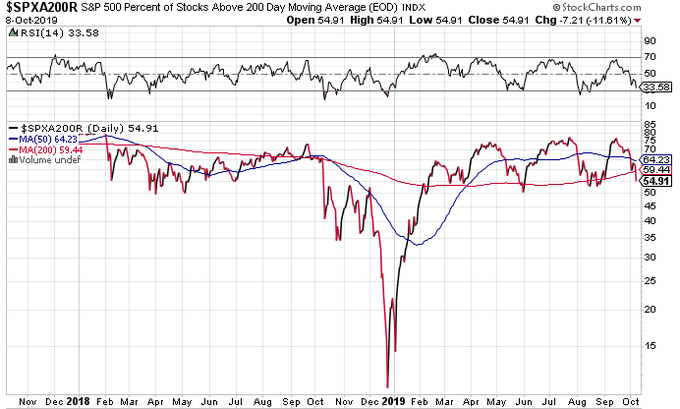 Very concerning drop in the number of stocks above their 200 day moving average.