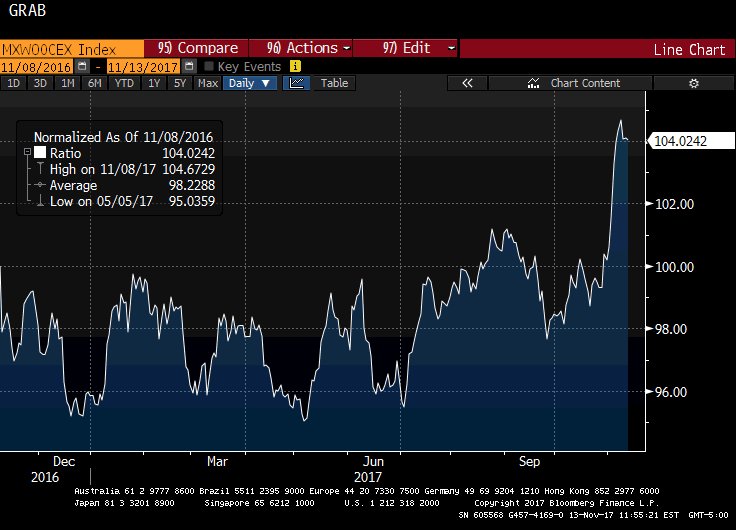 Investors seem to like the extra-empowered Xi. This is how the most China-exposed stocks have done relative to the MSCI World index