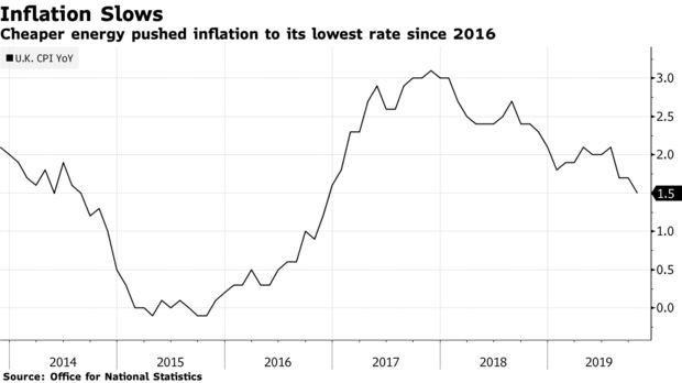 Cheaper gas and electricity pushes U.K. inflation to its lowest rate in almost three years