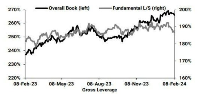Hedge fund gross leverage is hovering near 270%, with shorts