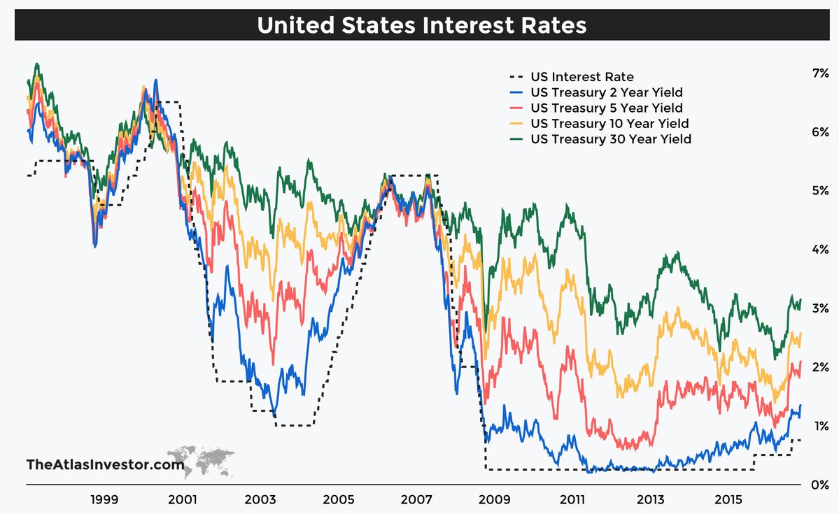 This is 18 years of interest rate history. The 2-year, 5-year, 10-year, and 30-year all on one giant chart