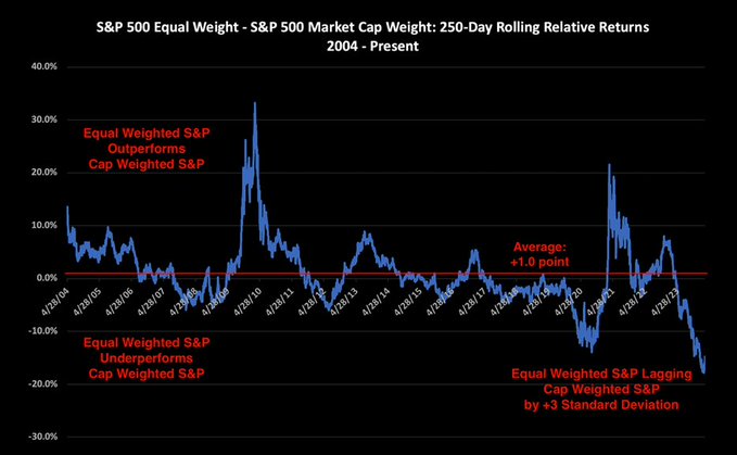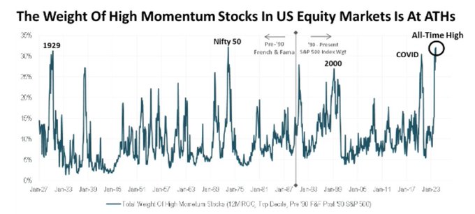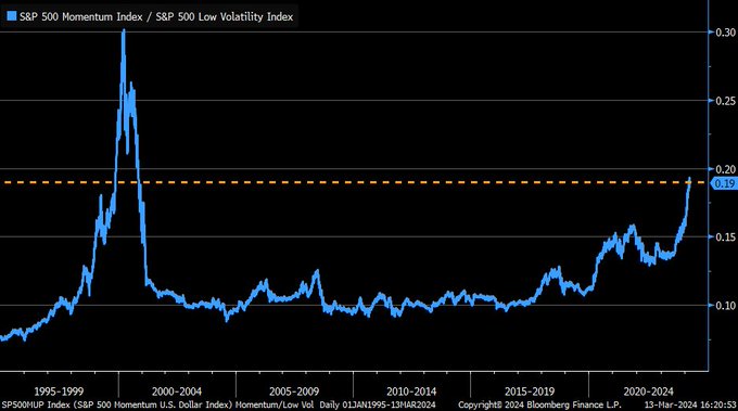 Ratio of S&P 500 Momentum Index relative to S&P 500 Low