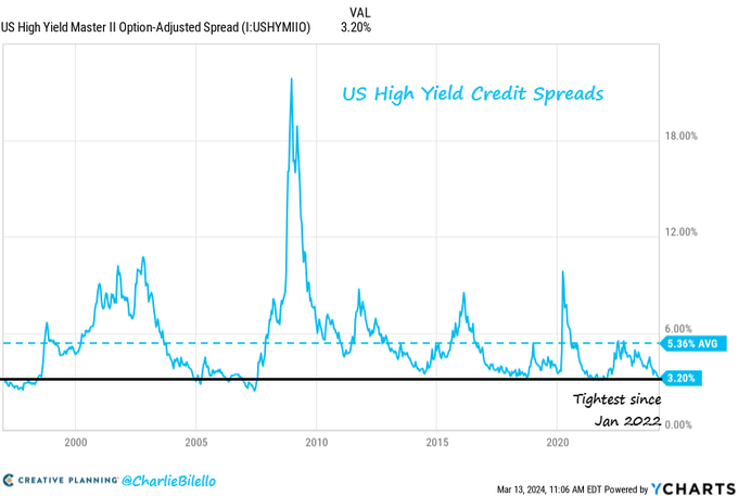 US High Yield Credit Spreads have moved down to 3.20%, their