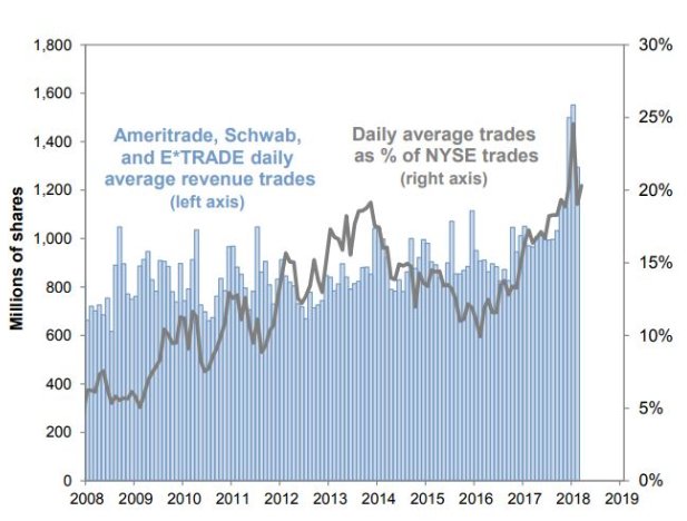 Earlier this year, retail trading SPIKED to its highest levels in a decade. This chart comes from Goldman Sachs