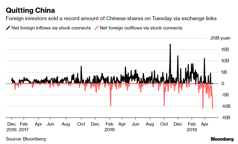 Foreigners dump record Chinese stocks on trade war woes