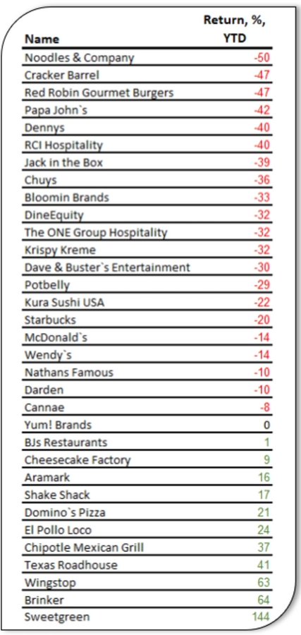 Majority of casual dining restaurants are down 30-50% YTD