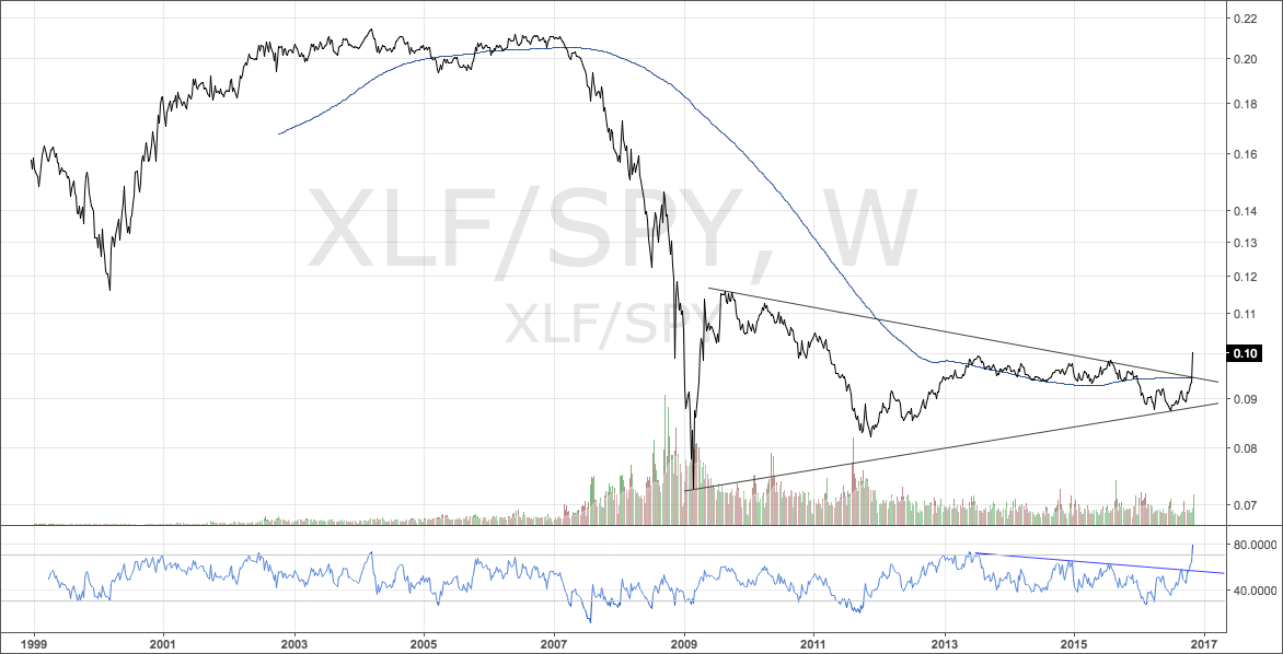 Banks might be breaking out. Here's the financial sector relative to the S&P 500 right now