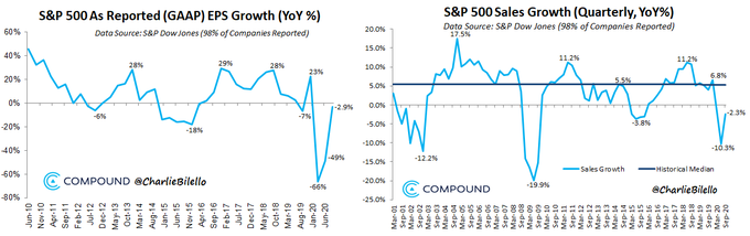 down 2.9% over the last year, S&P 500 Sales down 2.3%. |