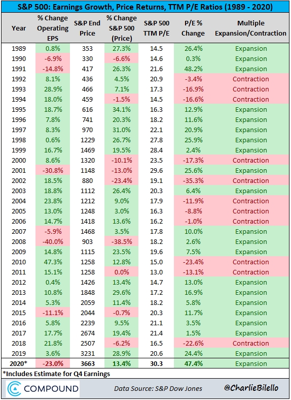 The S&P 500's P/E ratio has moved from 20.6 at the start of