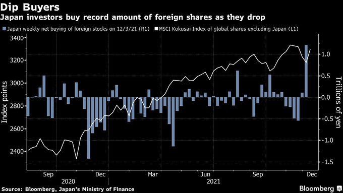 Japanese investors buying crazy amount of foreign stocks. These guys bought the dip