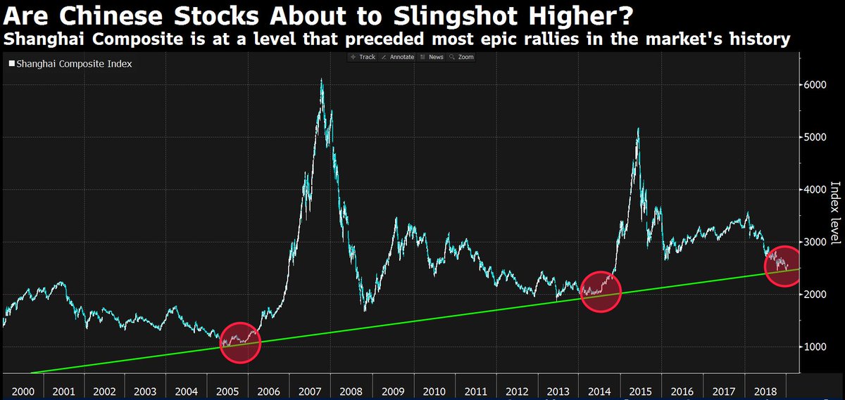 Chinese stocks are at the level that preceded the two craziest rallies in the market's history