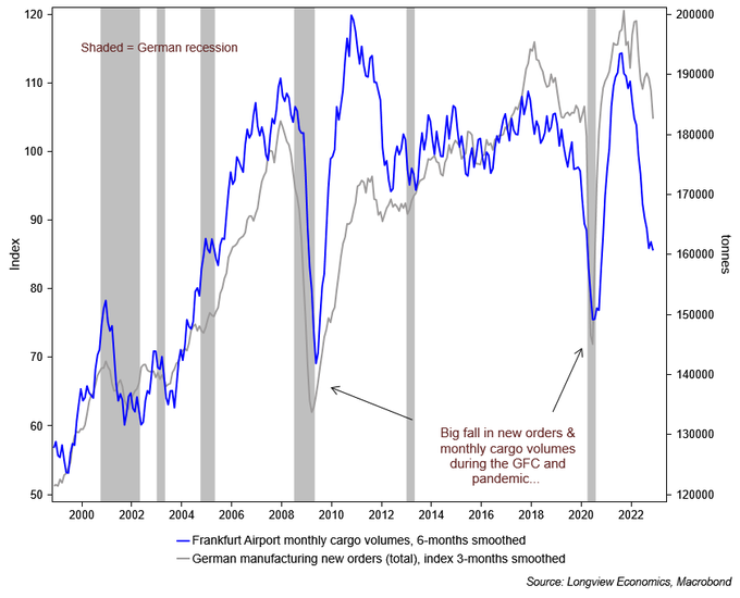 Frankfurt airport monthly cargo volumes & German manufacturing new orders both rolling over sharply...
