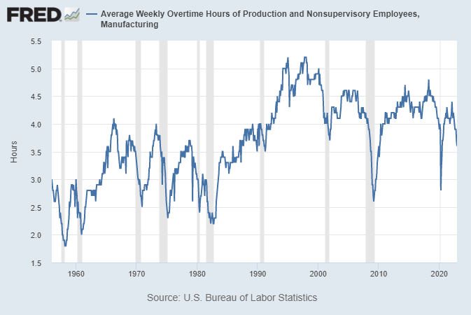 Overtime hours have historically been a good indicator for economic activity. They're not looking good: