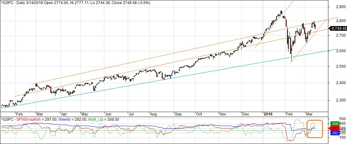 Number of bullish stocks in S&P turns back down: 297