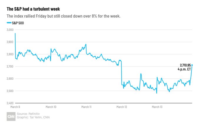 US stocks finished a turbulent week with gains on Friday, logging their best day since October 2008