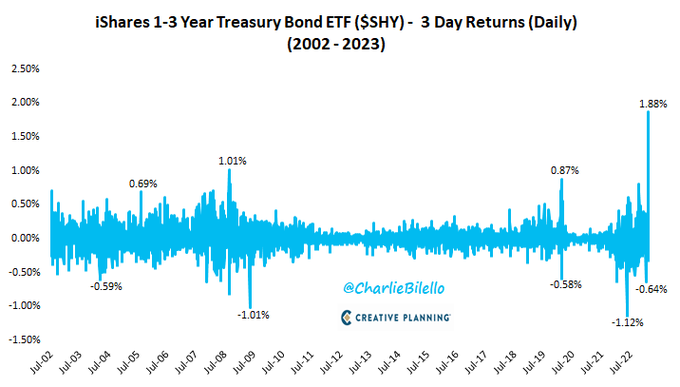 The recent 3-day advance in the 1-3 year Treasury ETF