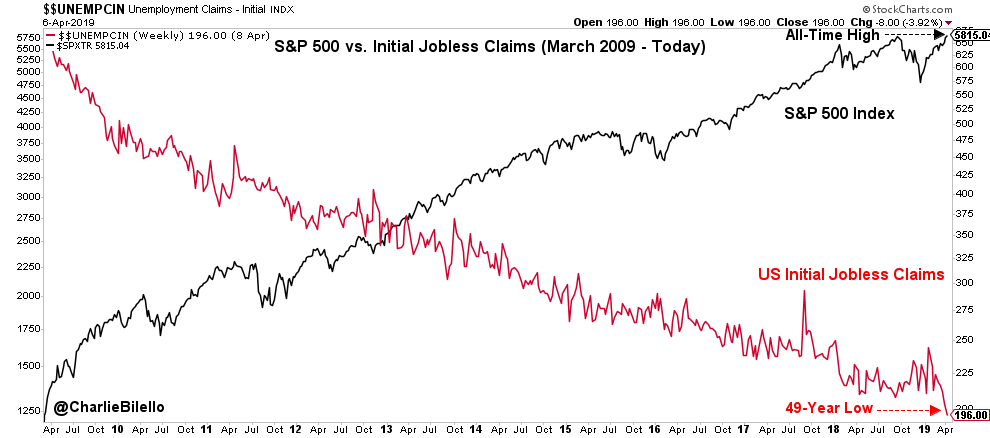 Jobless Claims hit a 49-year low. Inverse relationship since