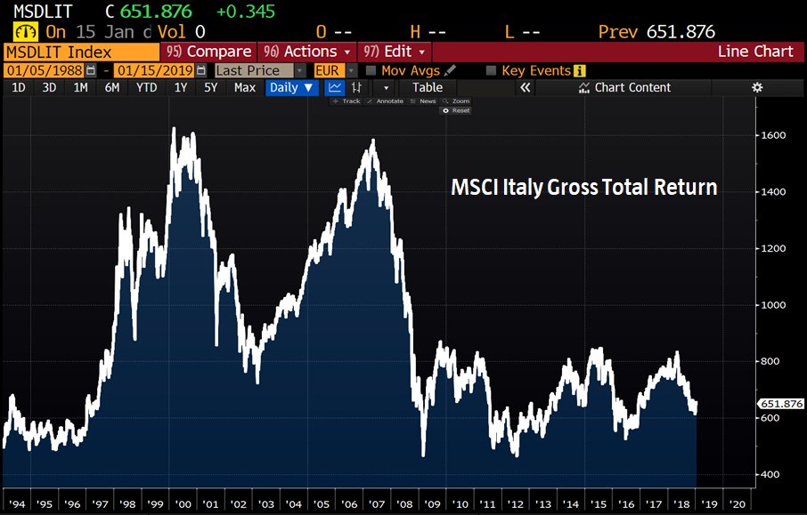 Another amazing long-term equity market chart! - Your total return on Italian stocks: -0% in the last 25 years -60% since 2000 -58% since 2007