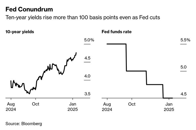 The market is now pricing in a single rate cut in all of 2025: a 25 bps move down to 4.00-4.25% by year end.