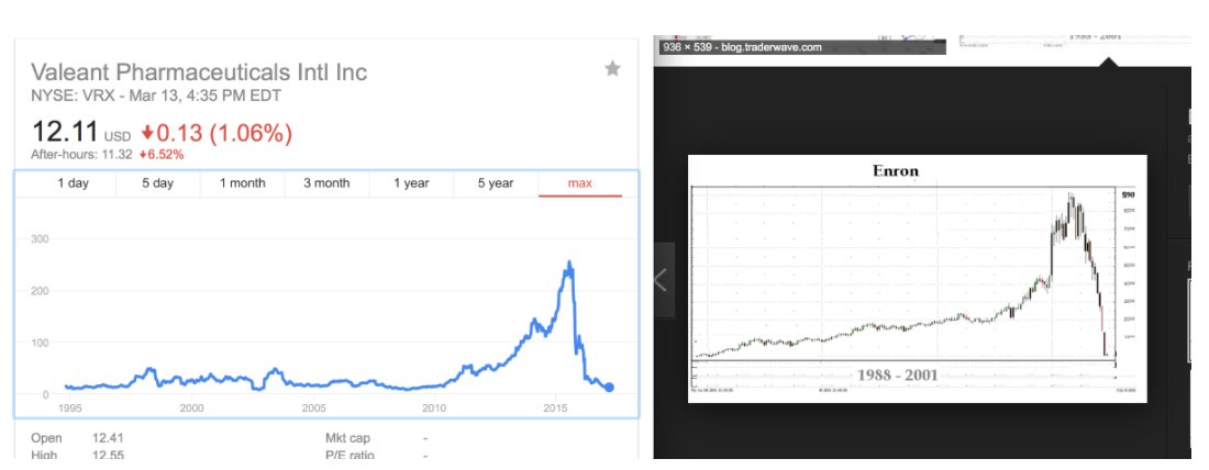 People are now comparing the chart of Valeant (left side) to Enron (right side)