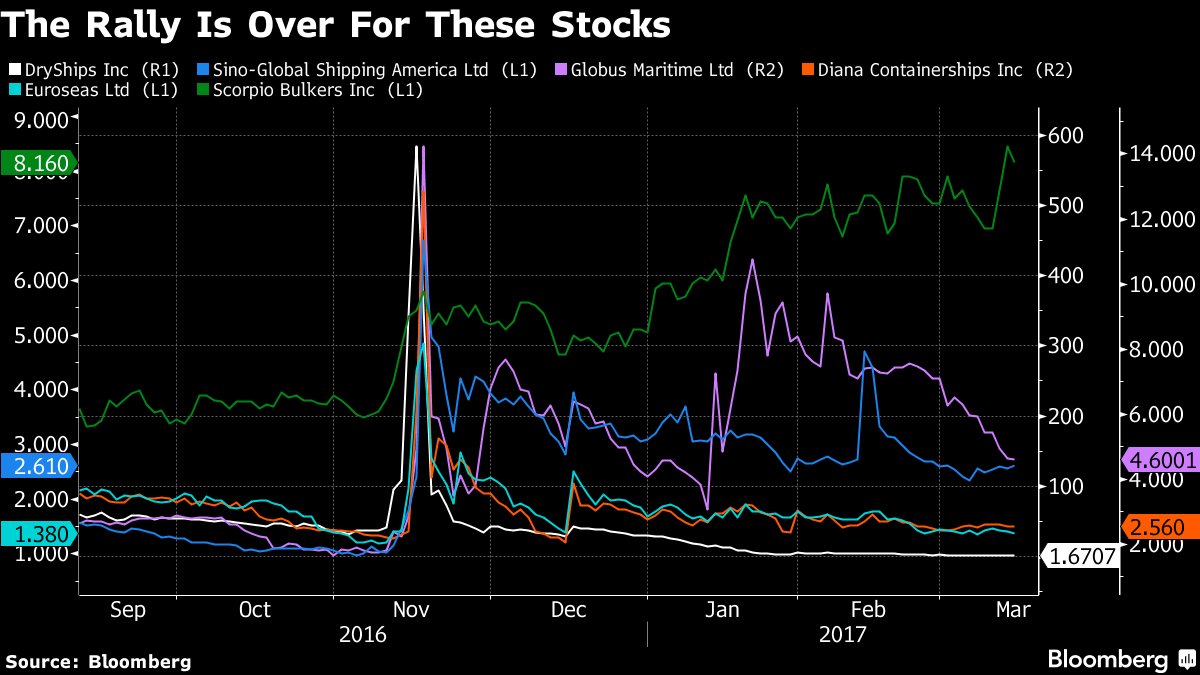 Shipping stocks that soared after the U.S. election have now tanked