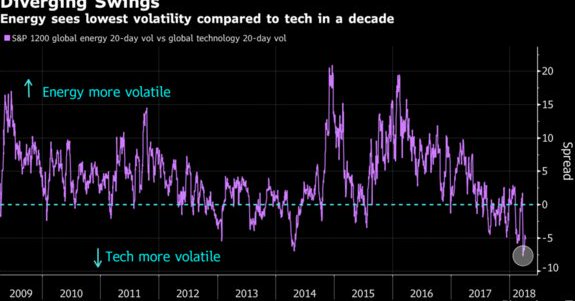 Energy sees lowest volatility compared to tech in a decade