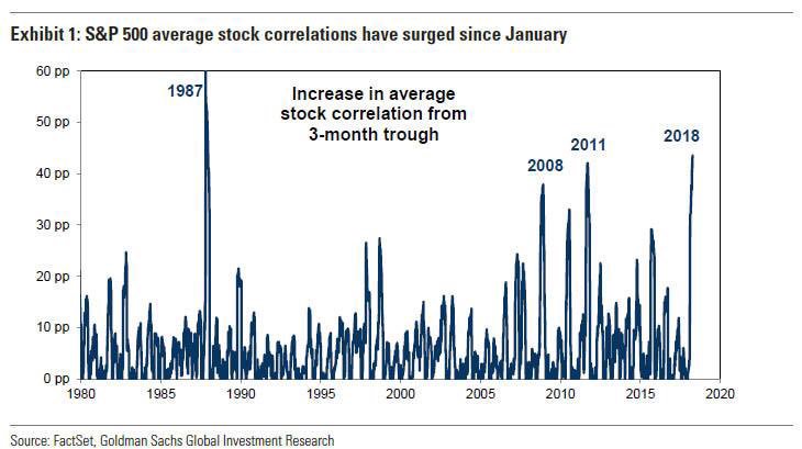 S&P 500 average stock correlations has surged since January