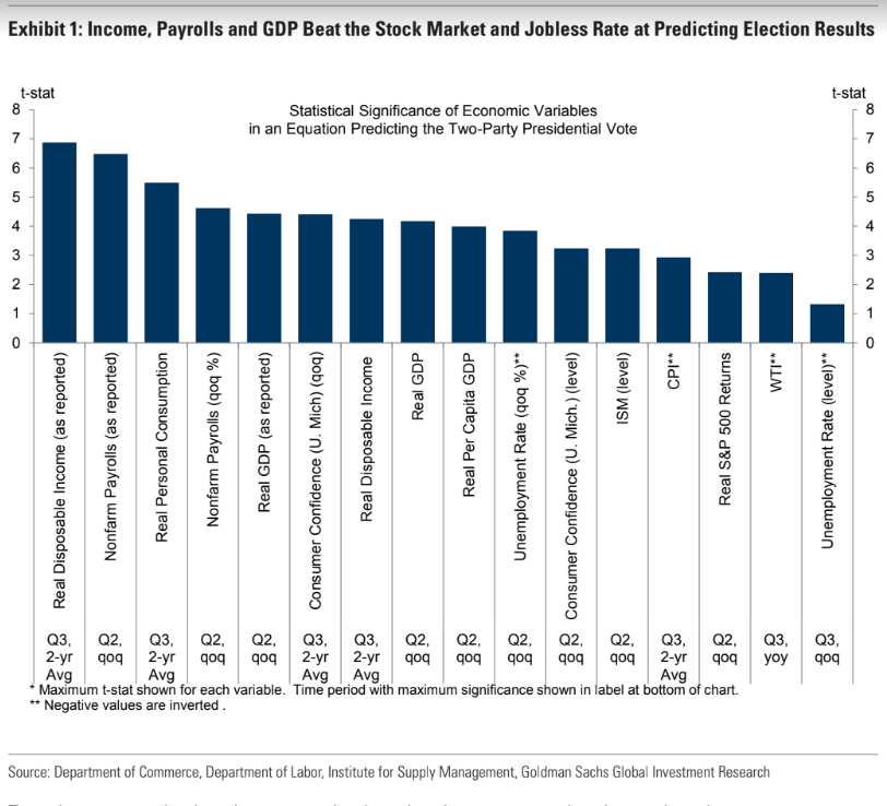 Here's where stock-market performance ranks when it comes to predicting presidential election results, according to Goldman Sachs