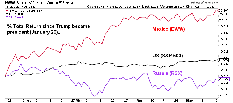 You can follow the news or follow price. Here's Mexico vs Russia since USA elections