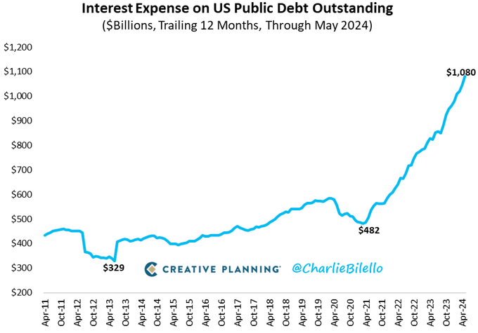 The Interest Expense on US Public Debt hit $1.08 trillion