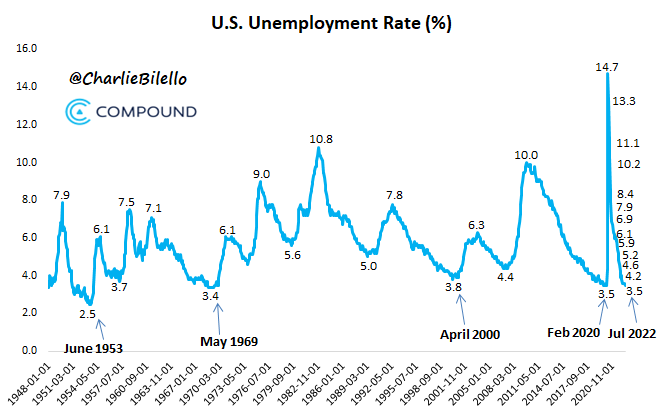 The US Unemployment Rate moved down to 3.5% in July, back to pre-pandemic levels which are the lowest we've seen since 1969