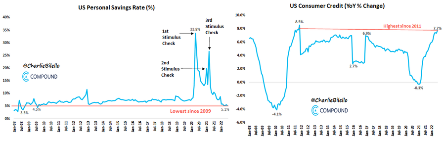 US Wages increased 5.2% over the last year while consumer prices (CPI) rose 9.1%. How are Americans still spending given this enormous gap?