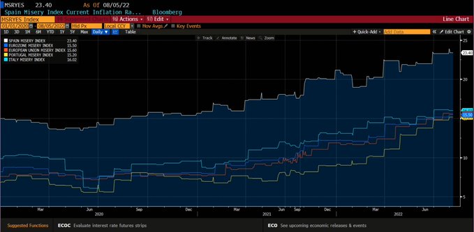 Misery Index Eurozone, European Union, Spain, Italy and Portugal