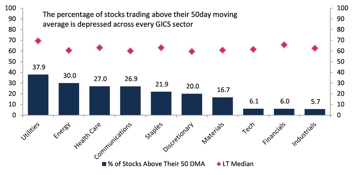 Percentage of stocks trading above 50-day moving averages is depressed across all 11 S&P GICS sectors