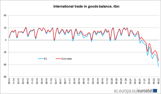 Euro area trade in goods deficit €50.9 bn in August, €64.7 bn deficit for EU
