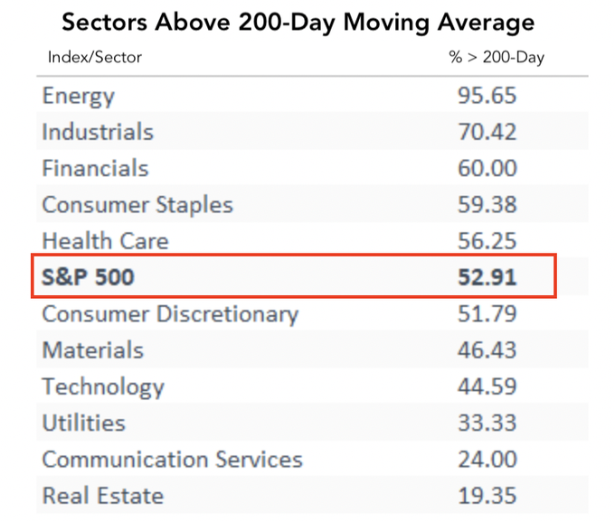 A list of % of stocks above this magic number for different
