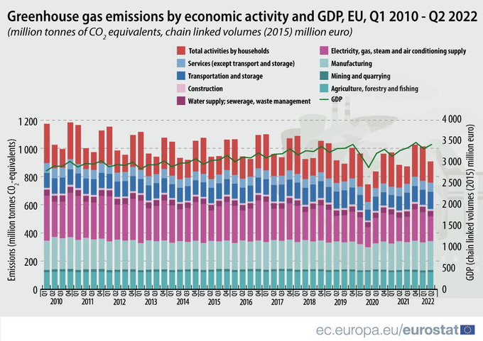 In Q2 2022, EU economy greenhouse gas emissions totalled 905