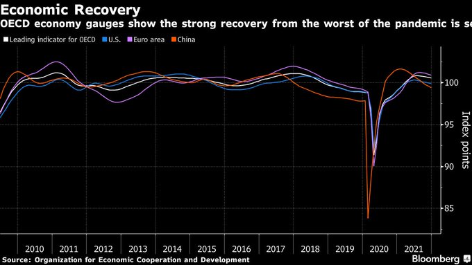 The strong recovery from the worst of the pandemic is set to moderate in several major economies, according to the OECD