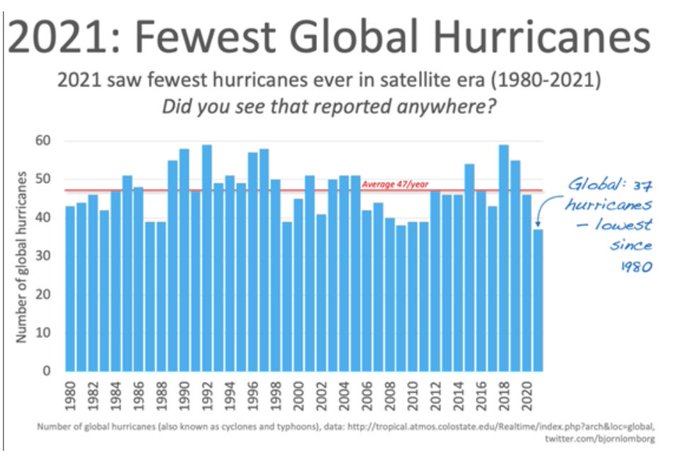 2021 had fewest hurricanes since satellite reporting began in 1980.