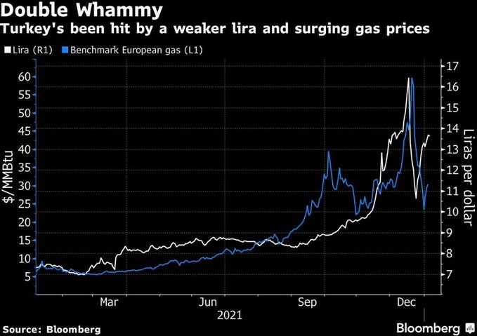 Turkey reports a record budget deficit in December as the government spent an unprecedented amount on gas imports