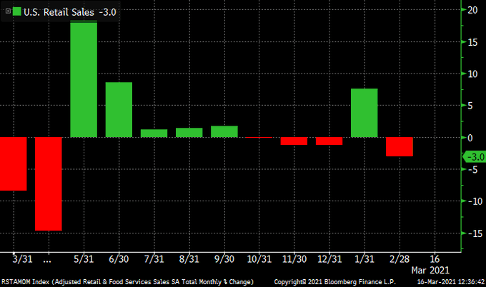 U.S. retail sales declined in February, when inclement
