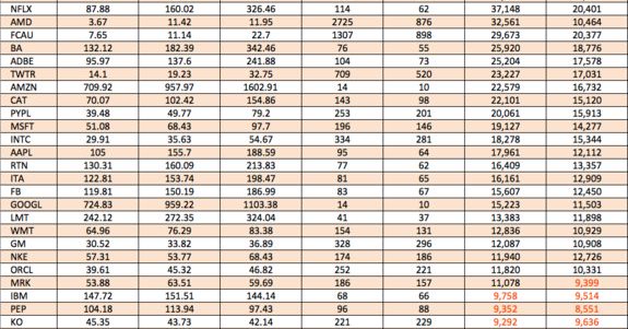 AMD $32,561 • BA $25,920 • ADBE $25,204 • AMZN $22,579 •
