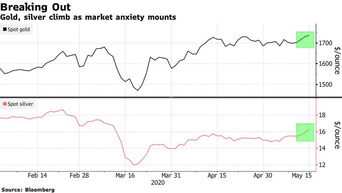 Fears of a second wave of virus infections lifts gold and silver markets