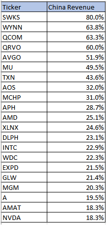 Here are the top S&P 500 companies with the highest revenue exposure to China