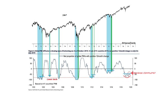 Global PMI Breadth (41 countries) may have formed a bottom. The basing process looks similar to the six priors since 2000